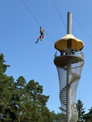 Viel Spaß hatten die Mädchen und Buben bei der Kinderferienfahrt in den Kletterwald Pottenstein. Der Skiclub Pistenschwinger Gössenreuth hatte zu dieser Aktion eingeladen und finanzierte auch die Busfahrt für die kleinen und großen Abenteurer. Nach der der Einführung und dem Probeklettern mit dem tollen Team vom Kletterwald ging es ab zumTeil in luftige Höhen. 16 Parcours und drei bis zu 250 Meter lange Seilbahnen standen zur Verfügung. Je nach Alter und Körpergröße waren die Kinder auf den verschiedenen Wegen wie Panda, Koala, Lemur, Maki, Pavian, Schimpanse unterwegs und hatten viel Spaß dabei. Dazwischen wurde sich bei einer Brotzeit gestärkt bevor es am Nachmittag wieder nach Hause ging.
