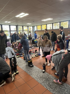In der Aula des ehemaligen Grundschulgebäudes wurden gebrauchte Carving-Ski, Skischuhe, Helme, Stöcke, Schlittschuhe, Bekleidung, und weiteres Zubehör angeliefert. Obwohl es weniger Artikel als beim letzten Basar im Jahr 2023 waren, kamen die Schnäppchenjäger doch voll auf ihre Kosten. Die Helfer des Skiclubs waren in allen Bereichen beratend tätig und unterstützten bei der richtigen Wahl.